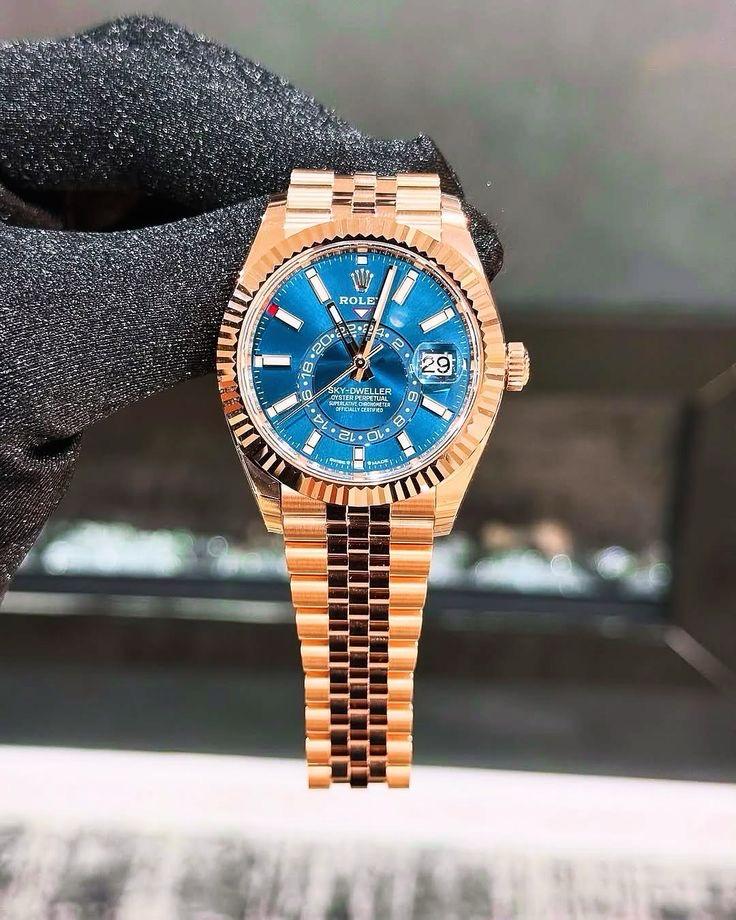 Expertly crafted and designed for precision, the Rolex Sky-Dweller rose gold 40mm watch is the epitome of luxury. With a sleek and elegant 40mm rose gold case, this timepiece boasts sophisticated features such as an annual calendar and dual time zones for effortless timekeeping. Elevate your style with this statement piece.
